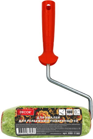 Валик "PROFI" зеленый полиакрил 180 мм, d 42 мм, бюгель 8 мм, ворс 18 мм. Изготовлен по технологии Termofusion. Диаметр бюгеля 8 мм., диаметр ролика 42 мм. Эргономичная пластиковая ручка.