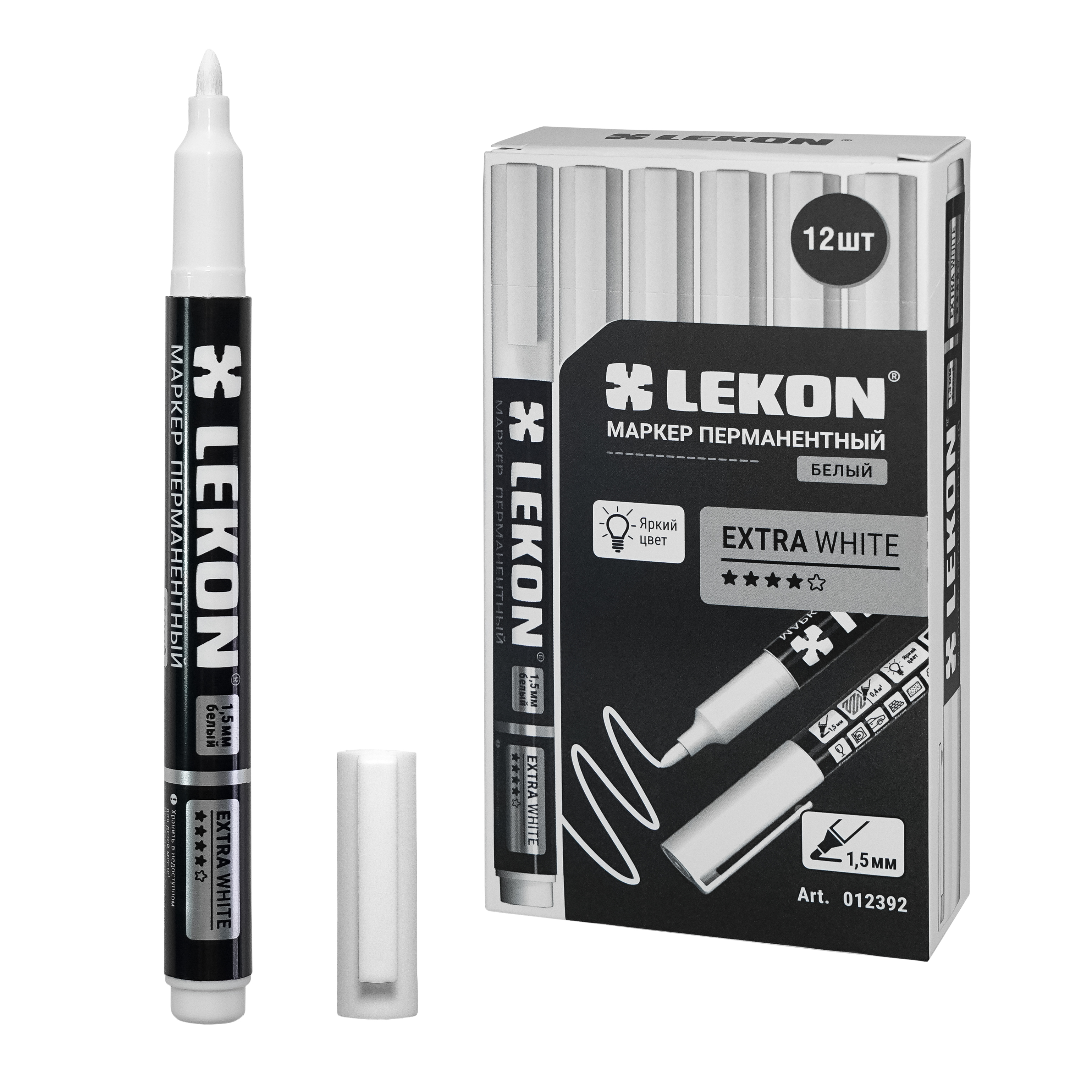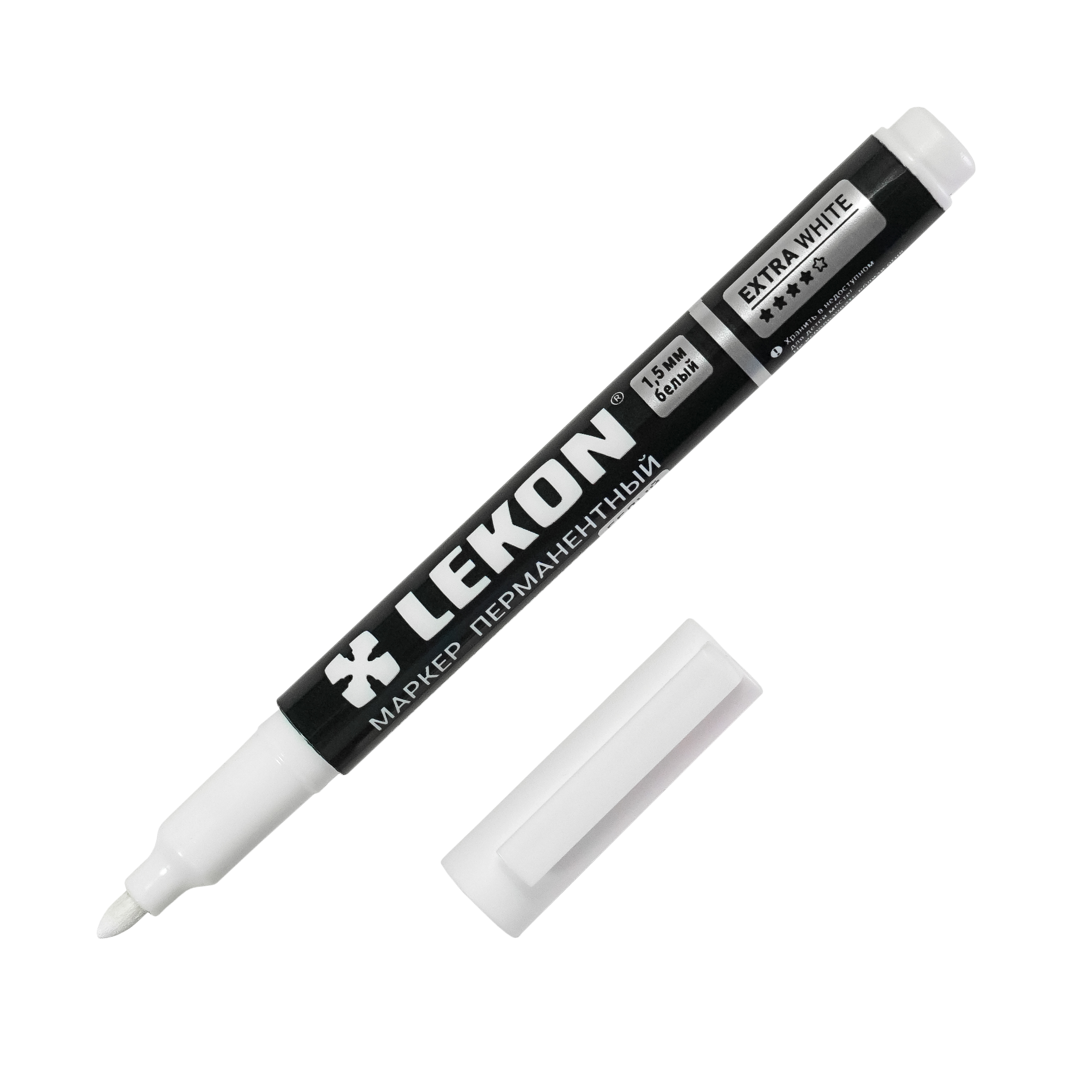 Маркер перманентный LEKON Extra White белый. Extra White 1,5 мм перманентный маркер белого цвета.