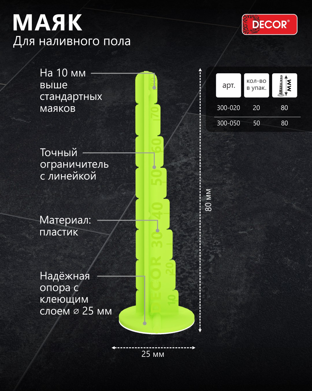 Маяк DECOR h=80 мм, для наливного пола: