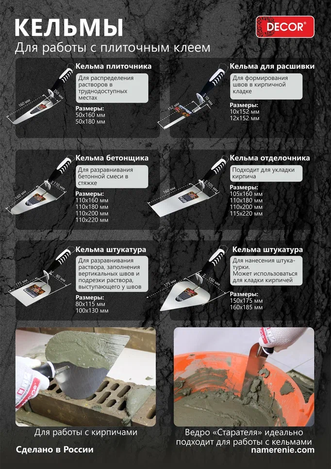 Кельма DECOR бетонщика толщина 1,2 мм.