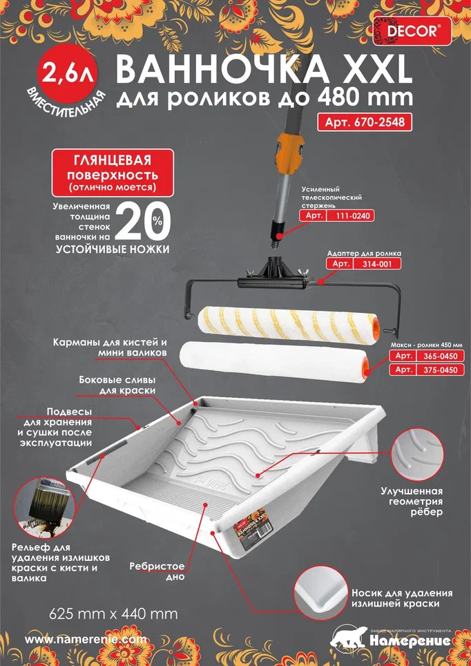 Ванночка для краски предназначена для макси валиков 250-480 мм.