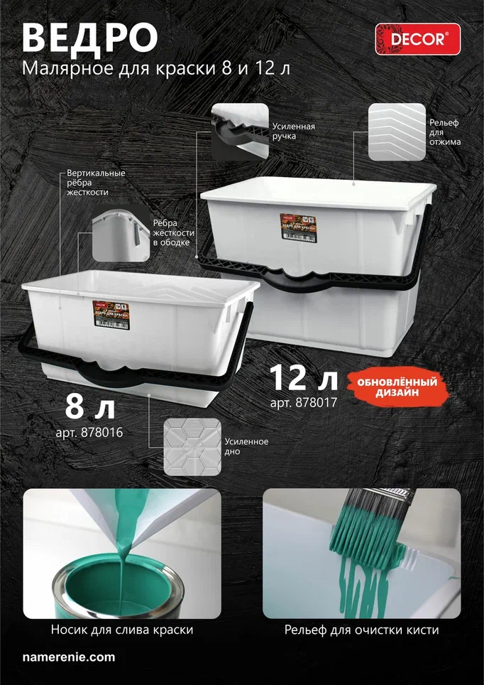 Ведро белое пластиковое большое хозяйственное с носиком малярное 12 литров DECOR - 1 шт.