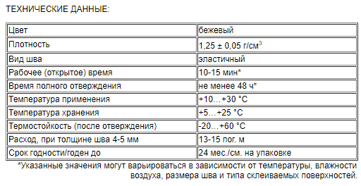 Поверхности должны быть сухими, чистыми, тщательно очищенными от жира, масла, пыли и других загрязнений.Срезать носик-насадку под углом 45° с учетом необходимой ширины шва. Срезать наконечник картриджа до резьбы. Навинтить носик-насадку на картридж, картридж вставить в строительный пистолет. Клей наносить полосами или точечно на основание или приклеиваемую поверхность. Склеиваемые поверхности соединить на несколько секунд, слегка перемещая их относительно друг друга, затем разъединить на 3-5 минут, далее повторно соединить элементы, равномерно и плотно прижимая. Положение приклеиваемого элемента можно откорректировать без рассоединения в течение 2-3 минут. Время полного отверждения – не менее 48 часов. Излишки клея до отверждения очищаются ацетоном или бензином, после отверждения – механическим способом. При монтаже больших элементов для дополнительной фиксации необходимо использовать поддерживающие приспособления.