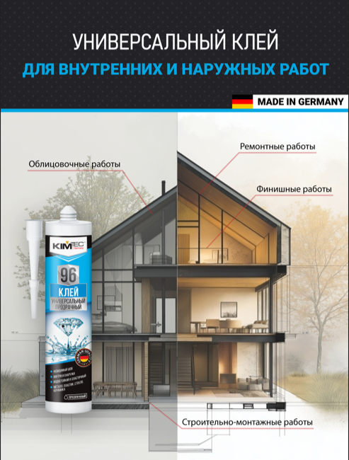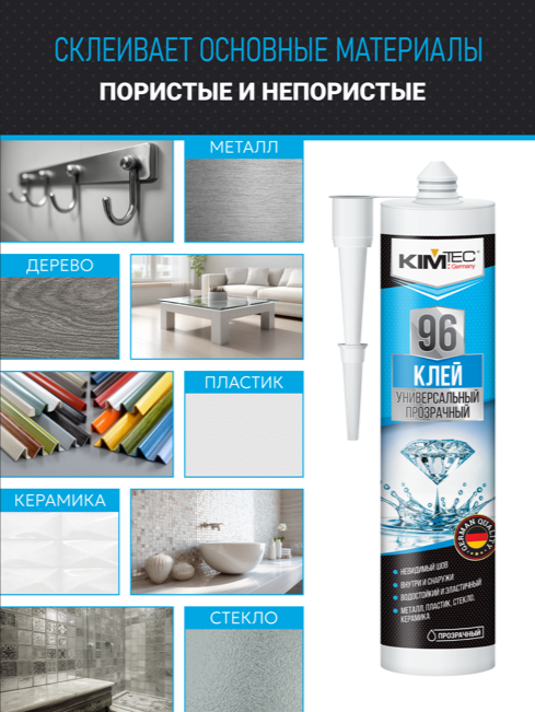 KIM TEC 96 Клей вместо гвоздей многоцелевой влагостойкий кристально-прозрачный - монтажный клей для внутренних и наружных работ.