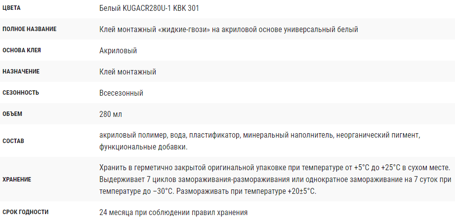 Высококачественный универсальный акриловый клей «жидкие гвозди» KUDO® специально разработан для приклеивания изделий из древесины, ДСП, ДВП, EPS, XPS и UPVC на бетонные, кирпичные, каменные, металлические, оштукатуренные и деревянные поверхности.