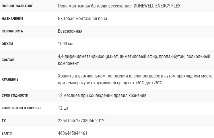 Пена монтажная бытовая всесезонная DONEWELL ENERGY FLEX
