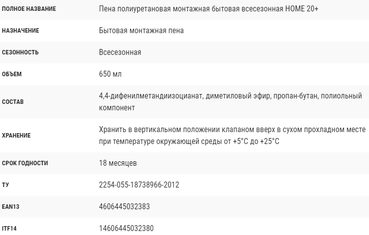 - Для получения максимального объема выхода и оптимальных физико-механических показателей пены перед использованием выдержать баллон при температуре от +18°С до +20°С не менее 10 часов.