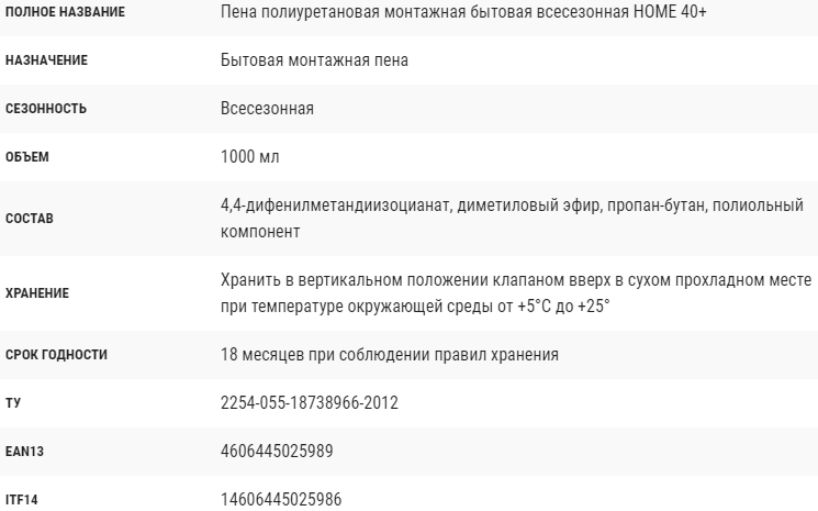 Пена монтажная бытовая всесезонная HOME 40+