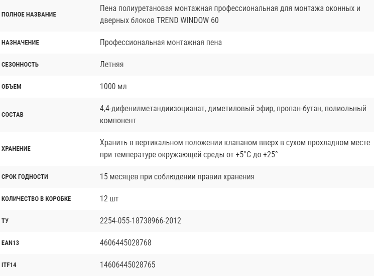 Пена монтажная профессиональная для монтажа оконных и дверных блоков TREND WINDOW 60