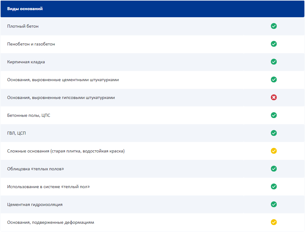 При укладке керамической плитки, керамогранита среднего размера допускается локальное выравнивание плиточным клеем небольших неровностей стен и полов (до 15 мм). Укладка плитки на вертикальные основания при слое клея от 10 до 15 мм производится с использованием стартового профиля.