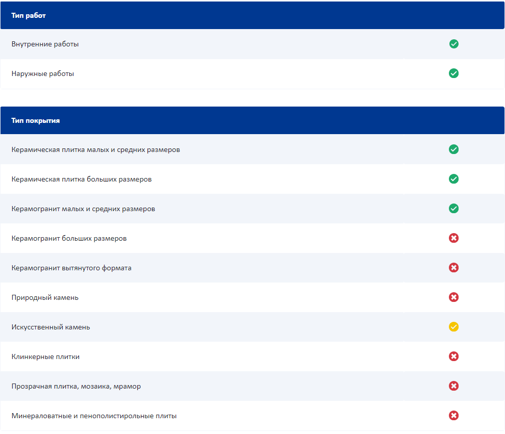 При укладке керамической плитки, керамогранита среднего размера допускается локальное выравнивание плиточным клеем небольших неровностей стен и полов (до 15 мм). Укладка плитки на вертикальные основания при слое клея от 10 до 15 мм производится с использованием стартового профиля.