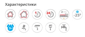 Краска представляет собой белую, вязкую, маслянистую на ощупь жидкость с ароматом зеленого яблока. После высыхания образует ровную матовую поверхность с высокой белизной. Краска обладает хорошей укрывистостью, водо- и атмосферостойкостью, светостойкостью (не желтеет в процессе эксплуатации), образует «дышащее» покрытие. Имеет хорошую адгезию к бетонным, кирпичным и оштукатуренным поверхностям.  |